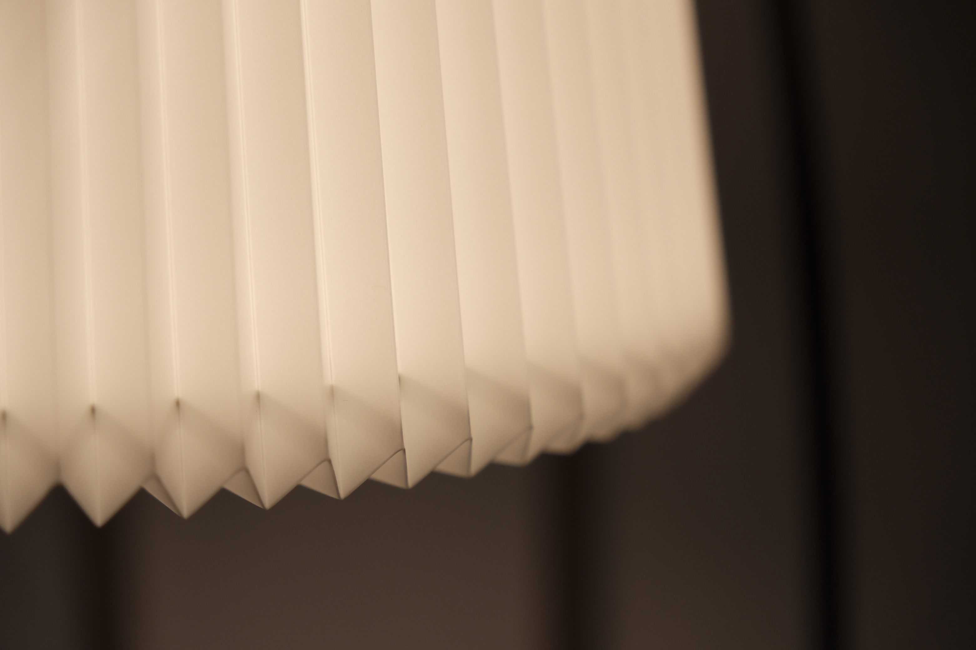 樹脂に折り目をつけてつくられたシェードで、光が直接目に入らず、やわらかく周囲を包むように広がります。
