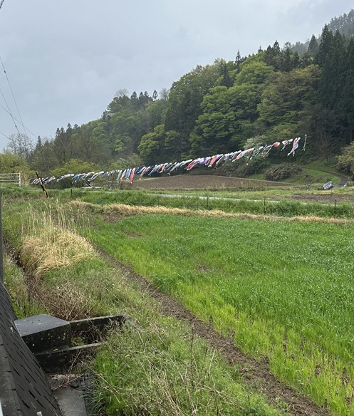 あいにくの雨の日でしたが、地域の方々が飾られたであろうこいのぼりが元気に泳ぎ、